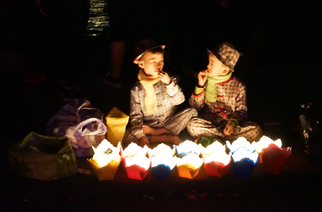 Our last night just happened to be a full moon, and unknown to us marks a special event here. Come evening all the electric lights are turned off and the town is lit only with lanterns. It is a festive time with some shops closing for the event, and people are everywhere. As we make our way through the streets there is music, games and everyone is having a good time. Street vendors sell treats and near the bridges (there are a few in town crossing the river) there are floating candles for sale. Everywhere the lanterns are shining brightly, illuminating the only light we see.